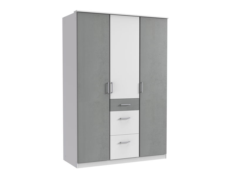 Wimex Click Drehtürenschrank 135 CM Weiss / Beton-Nachbildung Lichtgrau